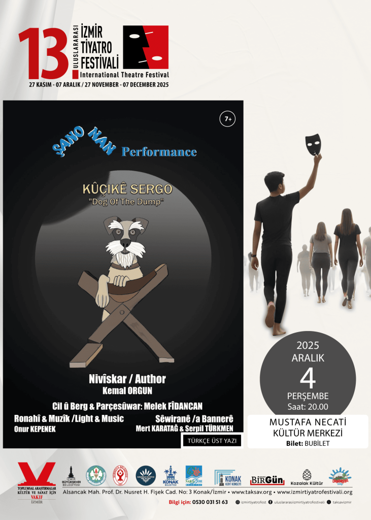 Kûçikê Sergo / Çöplük Köpeği, felsefe ve komediyi iç içe işleyen tek kişilik Kürtçe bir oyundur. Kendini önce herkesin üstünde oturduğu bir kürsü, sonra bir çöplük köpeği; daha sonra ordusuz bir komutan, topraksız bir çiftçi, öğrencisiz bir öğretmen ve yurtsuz bir yurttaş gibi gören bir adamın serüvenini ve çocukluk aşkını işler.