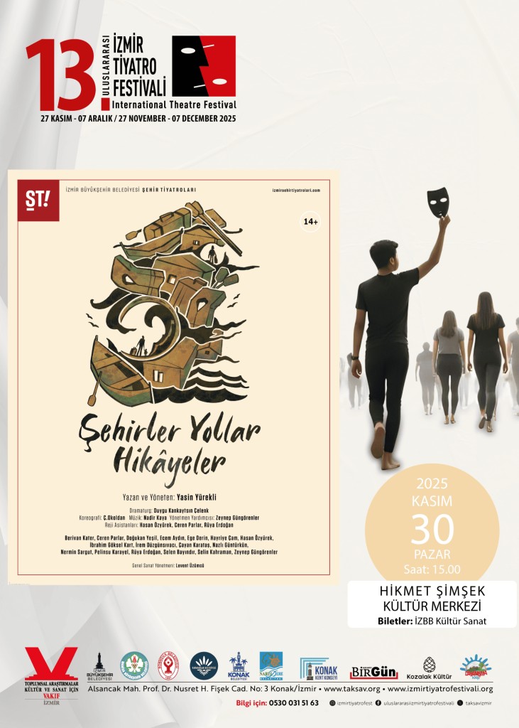 ‘Şehirler Yollar Hikâyeler’ günümüz dünyasının en can alıcı meselelerinden göç, mültecilik, yersiz yurtsuzluk kavramlarını sözün yükünden kurtararak, gündelik dışı beden tekniğinin kullanımıyla bir anlatı evreni yaratıyor. Yasin Yürekli’nin yarattığı dünyada zorunlu göçmen olarak insanın yaşadığı baş etmesi güç durumlar, çaresizlik, yenilmişlik öne çıkıyor. Oyun, seyirciyi insanın yersiz yurtsuz kalmasıyla varoluştan gelen direncin kırıldığına ve sonra yeniden yeniden kazanıldığına tanık ediyor.