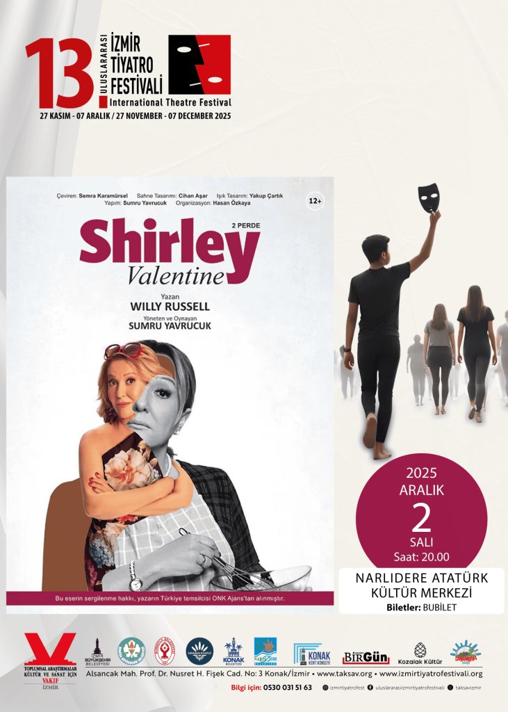 Willy Russell’ın Shirley Valentine adlı oyunundan ‘Shirley’ ismiyle Türkçe’ye uyarlanan oyun, tüm komedi unsurlarının, müziklerinin, seyirciye yaşattığı keyifli atmosferin yanı sıra potansiyelini mutfağa hapsetmiş bir kadının kendini keşfediş ve hayatının iplerini yeniden ele alışının hayranlık uyandıran öyküsünü anlatıyor.Tek kişilik müzikli bir komedi oyunu olan Shirley, Türkiye’de başarılı oyuncu Sumru Yavrucuk’un yorumuyla sahneleniyor. Sayısız tiyatro ödülünün sahibi Yavrucuk, Shirley’nin yönetmenliğini de üstlenirken, aynı zamanda oyundaki tüm karakterleri sahnede tek başına canlandırıyor.